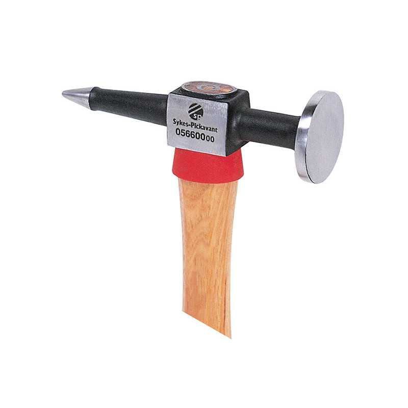 The Sykes Pickavant Crowned-Face Pick and Finish Hammer is a high-quality cast alloy steel head with hardened striking surfaces that feature fine quality octagonal wooden shafts. The wood and steel wedge handles provide maximum head retention with improved safety, while the tapered heads allow the shaft to expand into the head and are secured with a double wedge.
